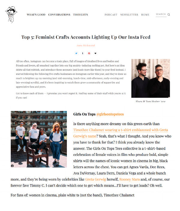 “Greta Gerwig”, “Isabelle Huppert” : Girls On Tops crée des t-shirts pour soutenir les femmes dans l'industrie du cinéma’